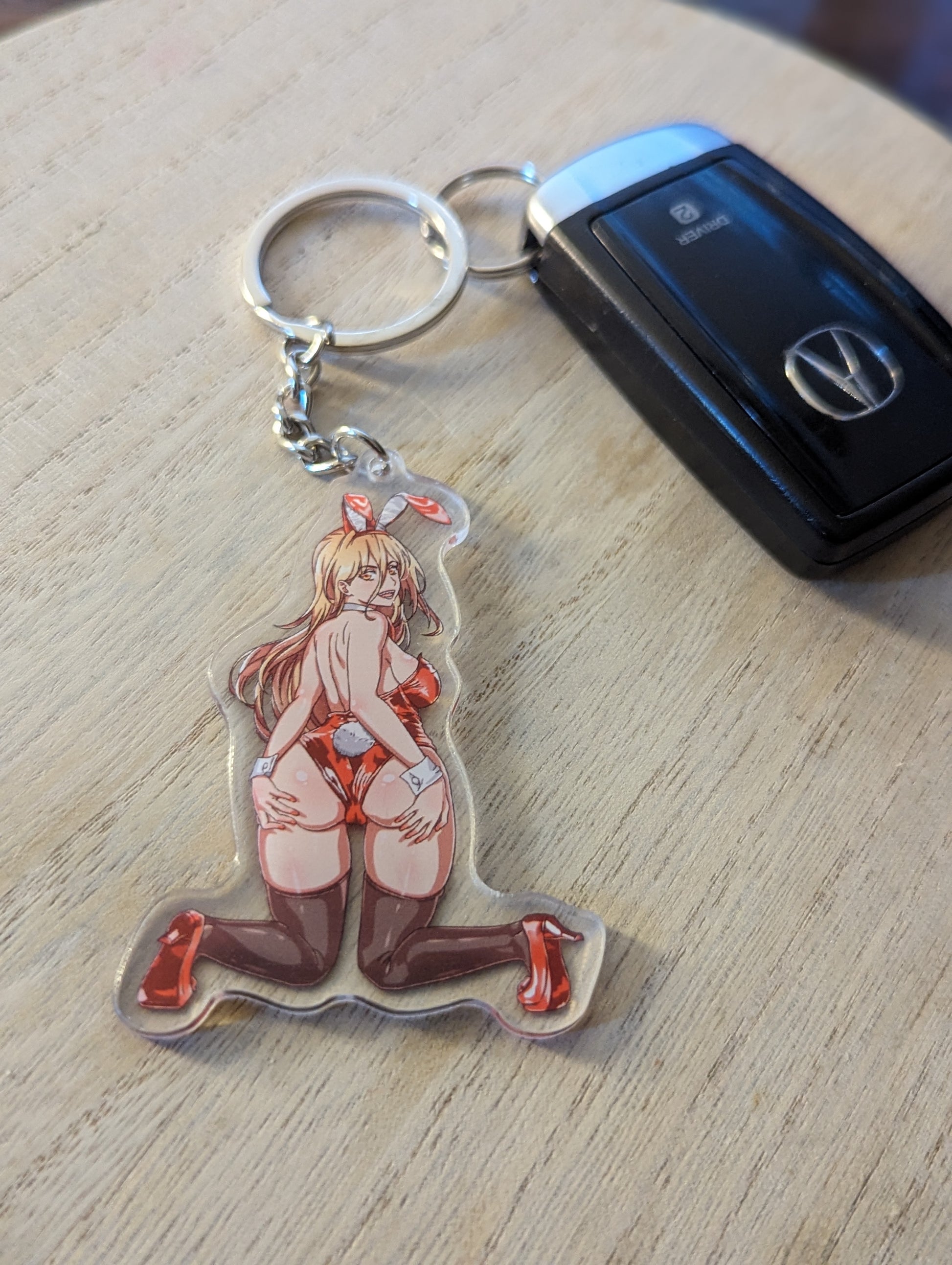 Double-sided acrylic keychain, approximately 3" tall