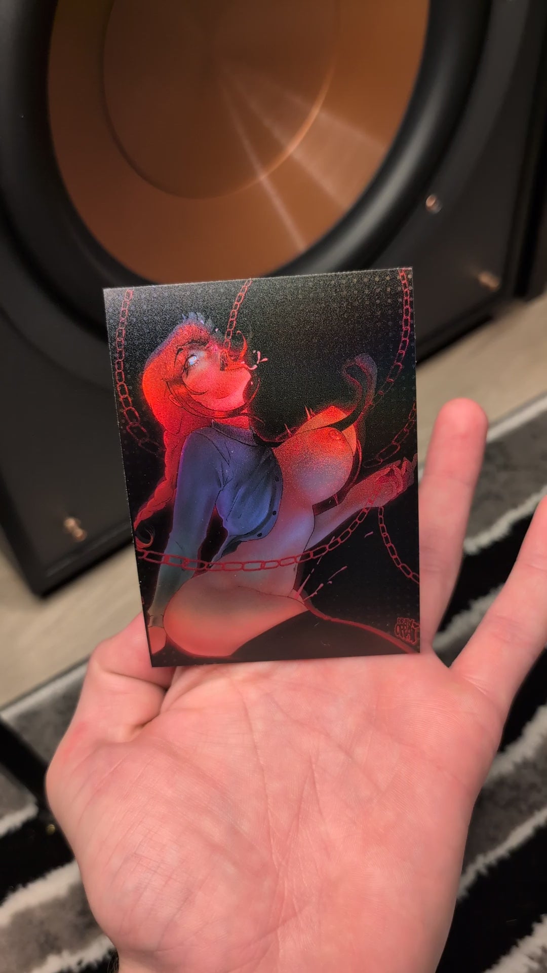 High quality spot holo vinyl sticker, approximately 5" tall